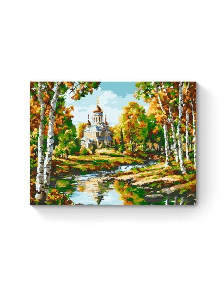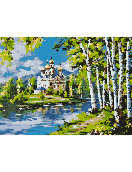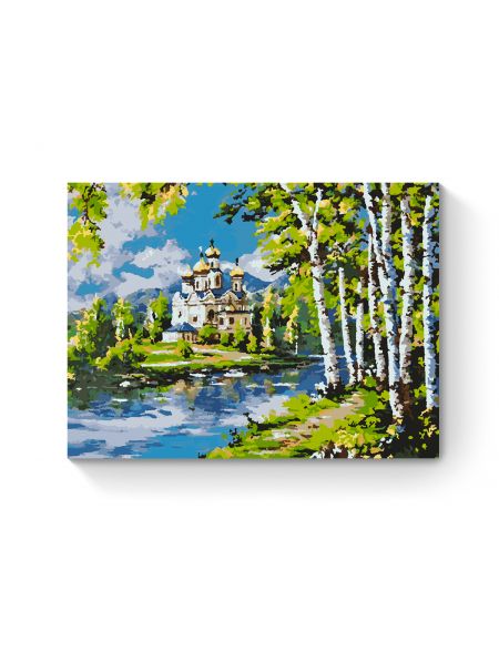 Картина по номерам на подрамнике «Храм у реки» 70x50 см