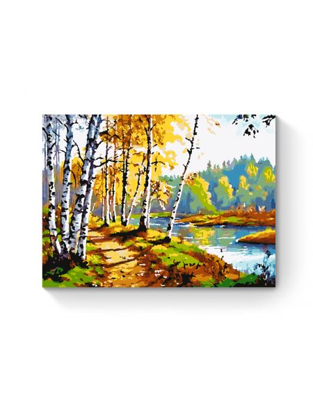 Картина по номерам на подрамнике «Березы у воды» 90x70 см