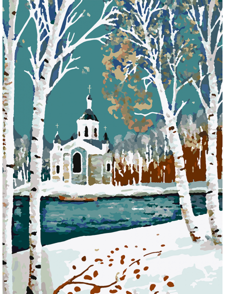 Картина по номерам без подрамника «Храм у реки» 40x30 см