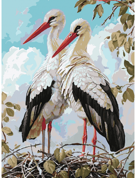 Картина по номерам без подрамника «Аисты» 70x50 см