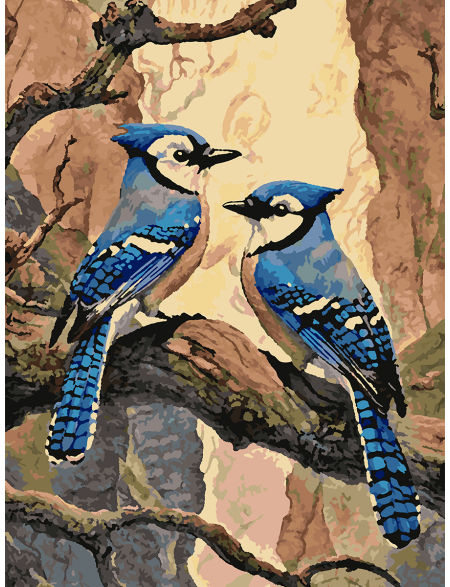 Картина по номерам без подрамника «Голубые сойки» 70x50 см