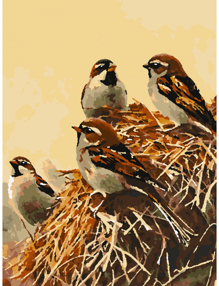 Картина по номерам без подрамника «Воробьи» 35x25 см