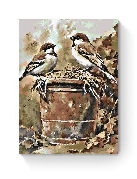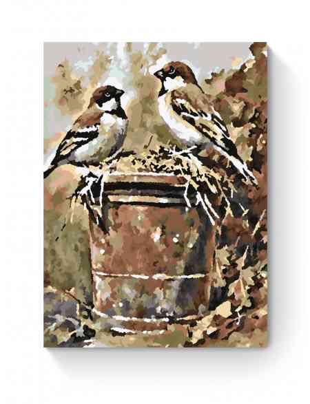 Картина по номерам на подрамнике «Воробьи» 35x25 см