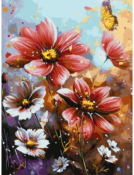 Картина по номерам на подрамнике «Красные цветы» 90x70 см