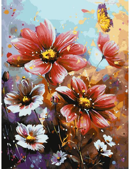 Картина по номерам без подрамника «Красные цветы» 90x70 см