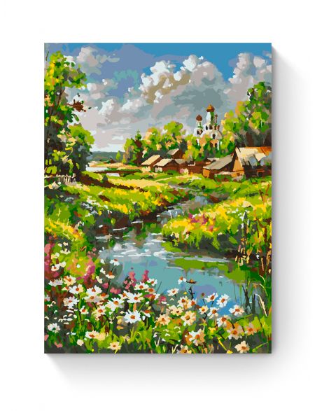 Картина по номерам без подрамника «Весеннее село» 70x50 см
