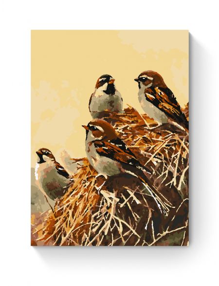Картина по номерам на подрамнике «Воробьи» 35x25 см