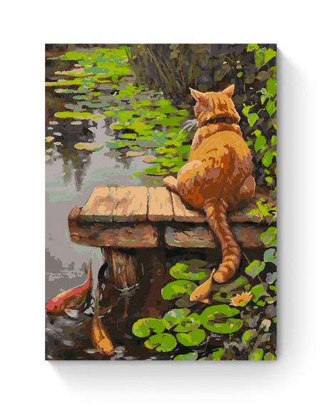 Картина по номерам на подрамнике «Котик рыболов» 70x50 см