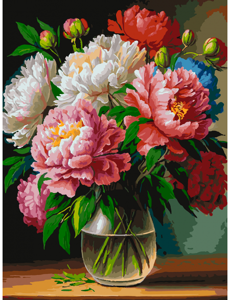 Картина по номерам без подрамника «Ваза пионов» 70x50 см