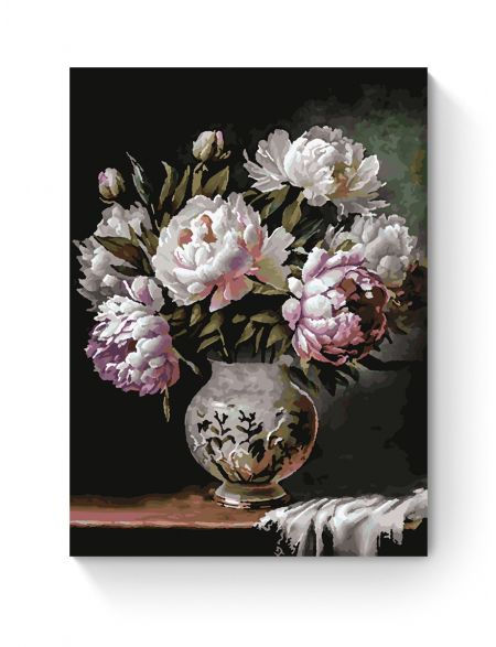 Картина по номерам на подрамнике «Ваза пионов» 35x25 см