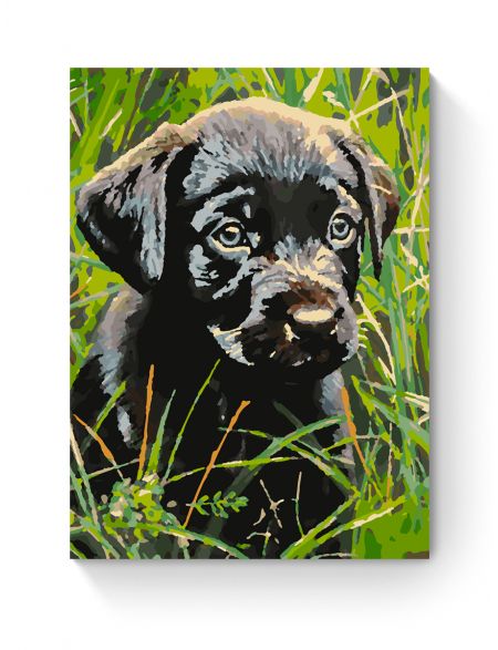 Картина по номерам на подрамнике «Черный щенок» 40x30 см