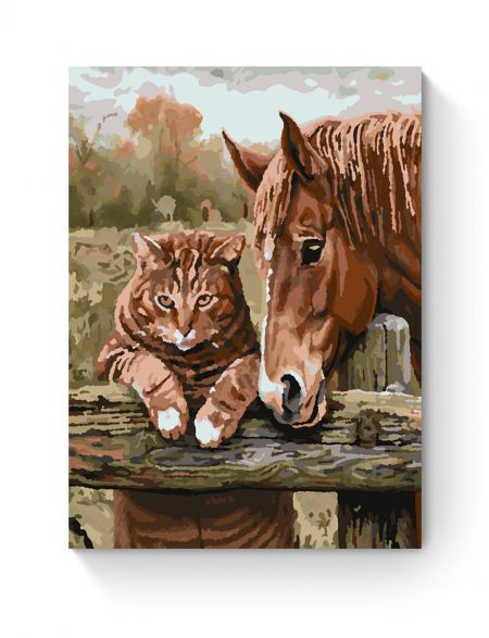 Картина по номерам на подрамнике «Кот и лошадь» 25x20 см