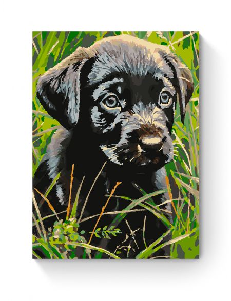 Картина по номерам на подрамнике «Черный щенок» 50x40 см