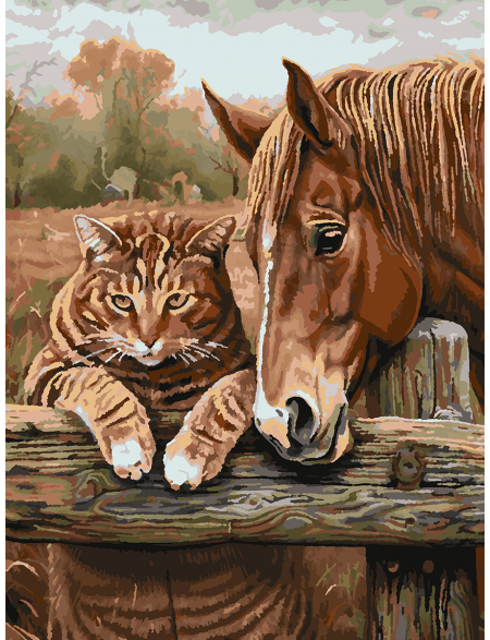 Картина по номерам без подрамника «Кот и лошадь» 70x50 см
