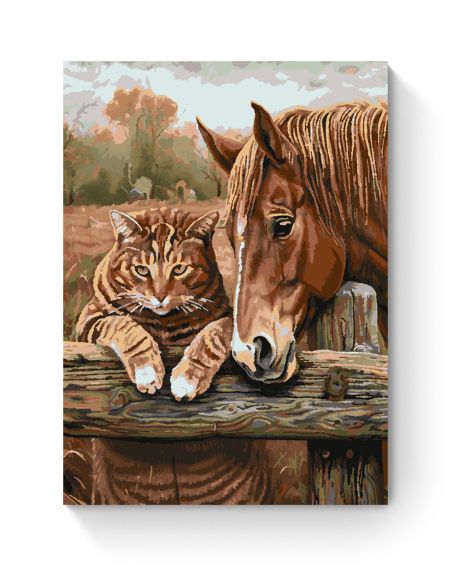 Картина по номерам на подрамнике «Кот и лошадь» 70x50 см