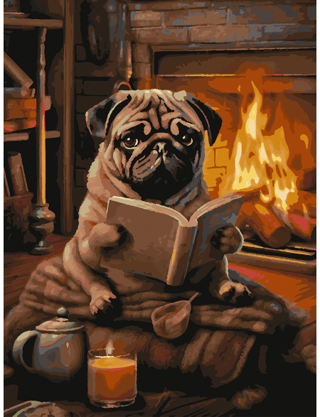Картина по номерам без подрамника «Мопс у камина» 70x50 см