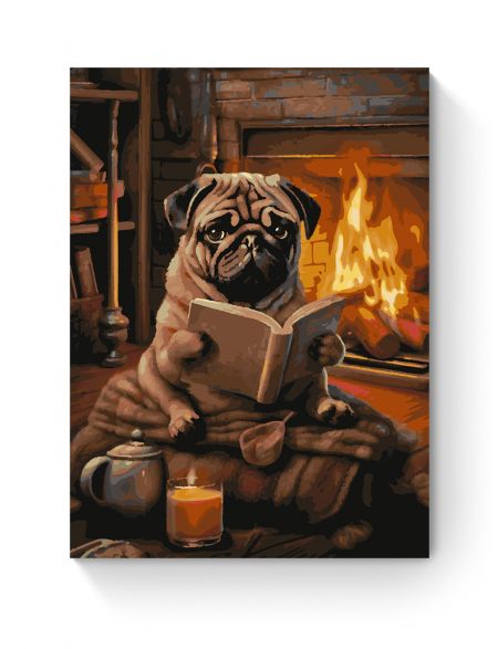 Картина по номерам на подрамнике «Мопс у камина» 70x50 см