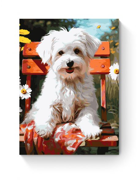 Картина по номерам на подрамнике «Белая болонка» 35x25 см