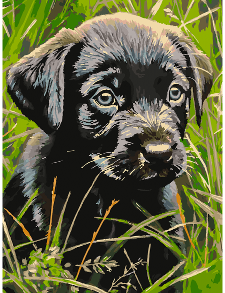 Картина по номерам без подрамника «Черный щенок» 70x50 см