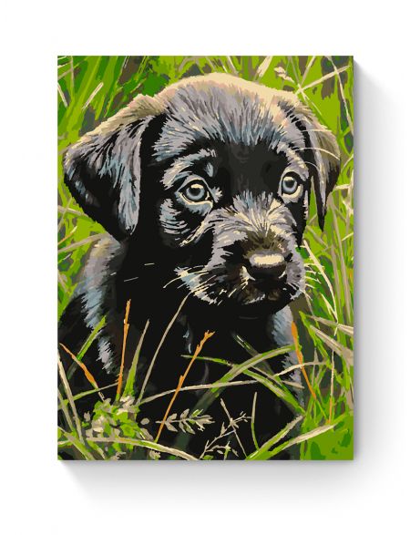 Картина по номерам на подрамнике «Черный щенок» 70x50 см