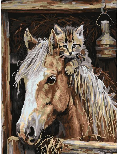 Картина по номерам без подрамника «Кот и лошадь» 80x60 см