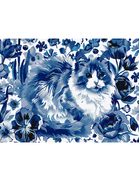 Картина по номерам без подрамника «Кошка Гжель» 90x70 см
