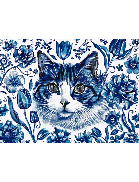 Картина по номерам без подрамника «Кошка Гжель» 90x70 см