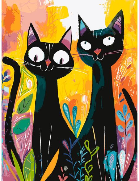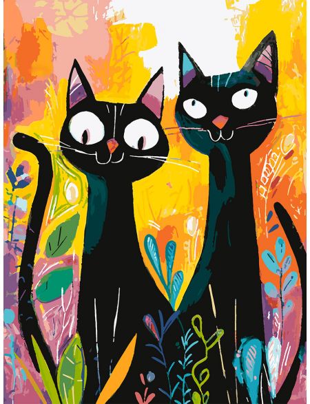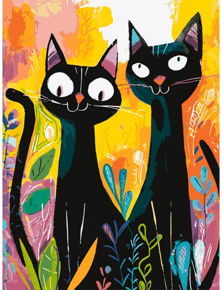 Картина по номерам без подрамника «Чёрные коты» 90x70 см