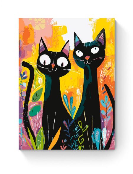 Картина по номерам на подрамнике «Чёрные коты» 90x70 см