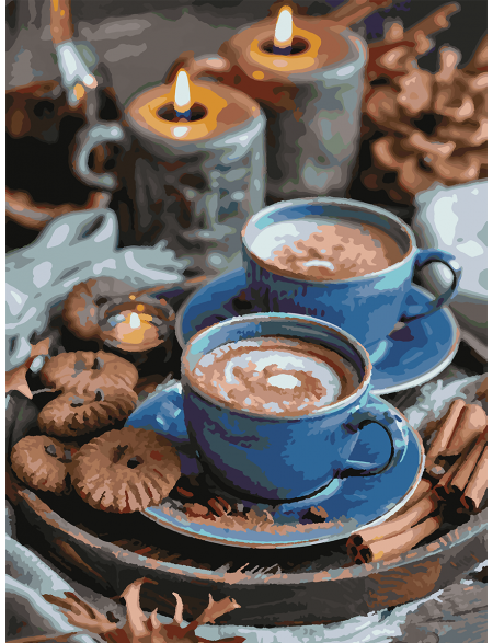 Картина по номерам без подрамника «Кофе на двоих» 70x50 см