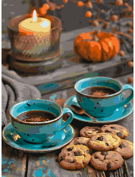 Картина по номерам без подрамника «Кофе на двоих» 70x50 см