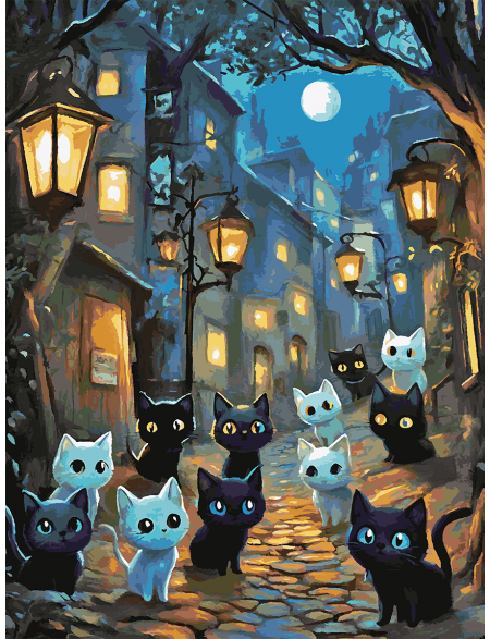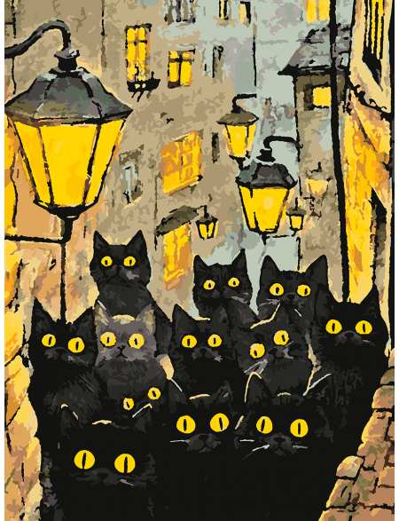 Картина по номерам без подрамника «Чёрные коты» 70x50 см