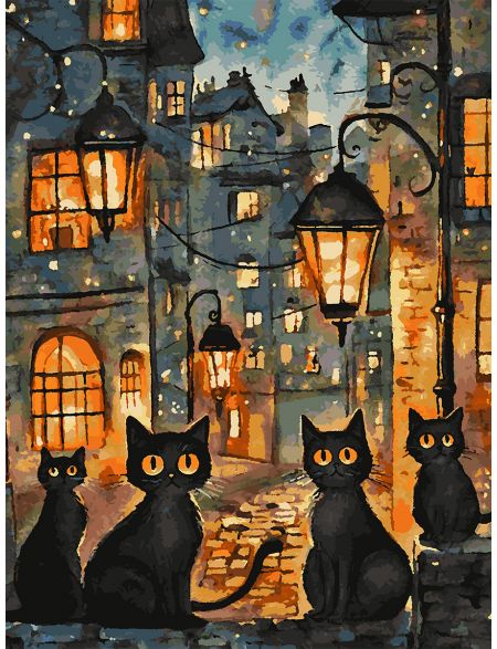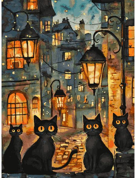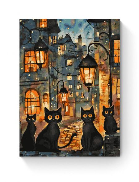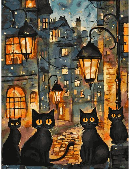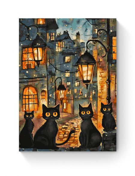 Картина по номерам без подрамника «Чёрные коты» 90x70 см