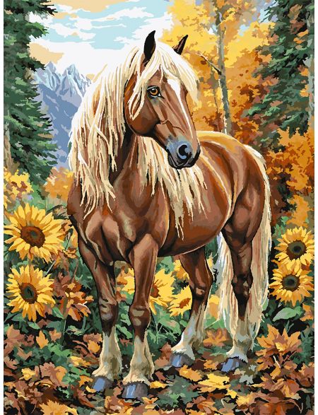 Картина по номерам без подрамника «Конь в лесу» 90x70 см