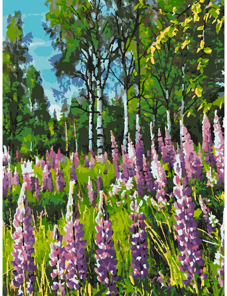 Картина по номерам без подрамника «Люпины в лесу» 70x50 см