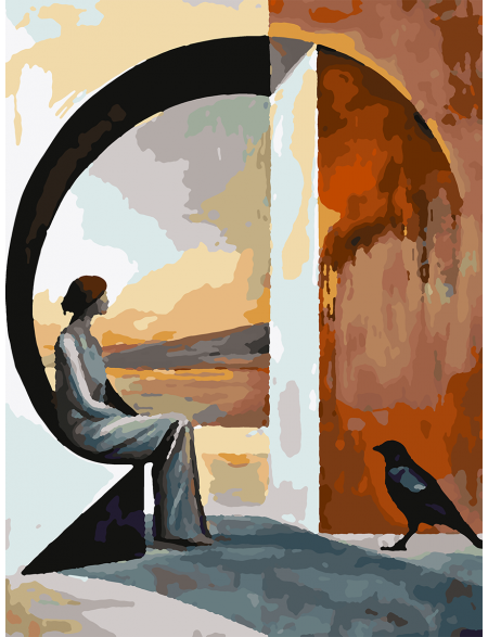 Картина по номерам без подрамника «Девушка и ворон» 40x30 см