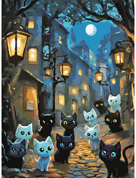 Картина по номерам без подрамника «Черные коты» 70x50 см