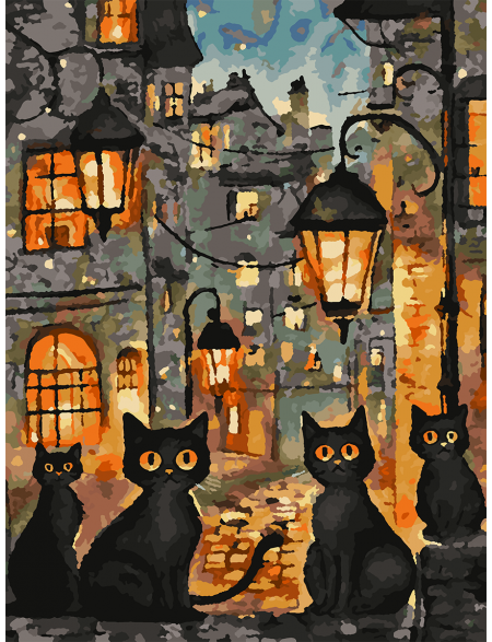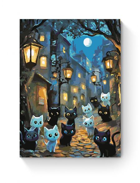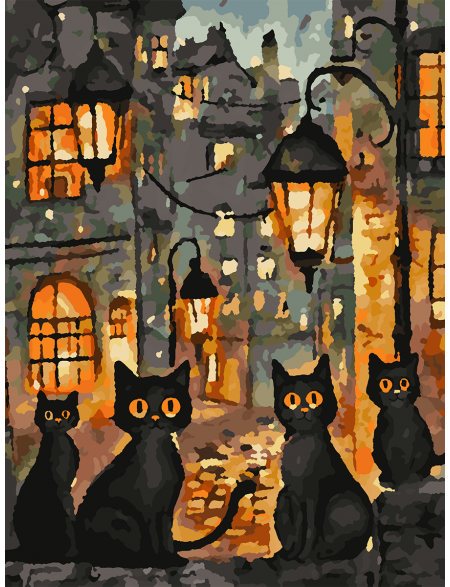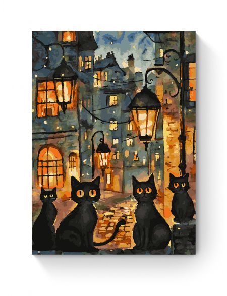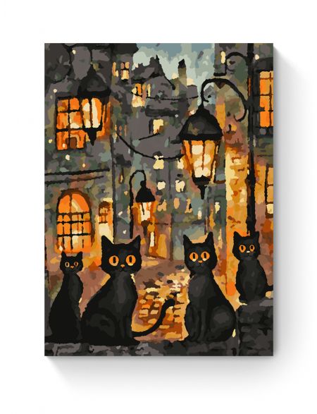 Картина по номерам без подрамника «Чёрные коты» 35x25 см