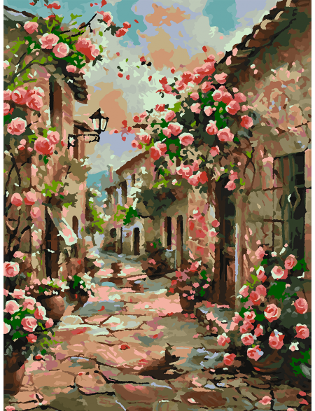 Картина по номерам без подрамника «Улочка роз» 70x50 см