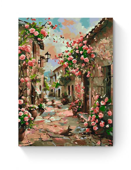 Картина по номерам на подрамнике «Улочка роз» 35x25 см
