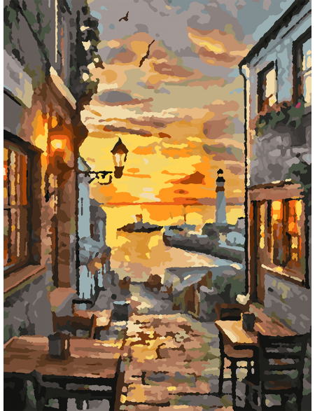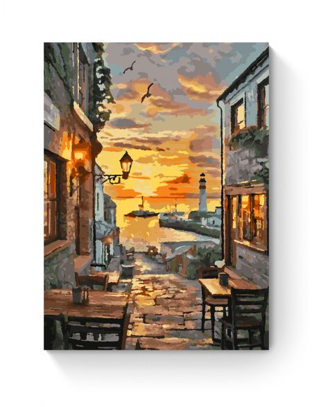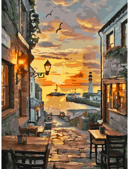 Картина по номерам без подрамника «Кафе у моря» 35x25 см