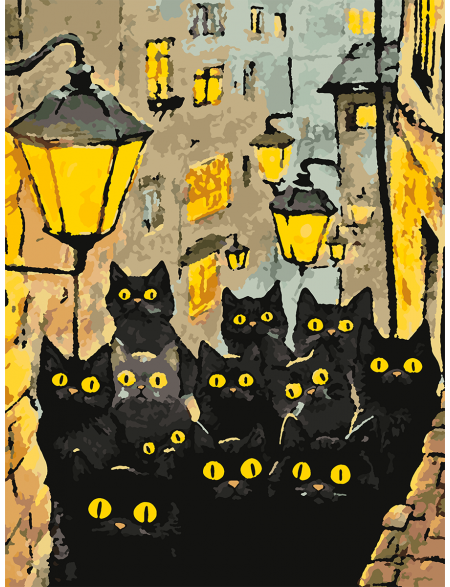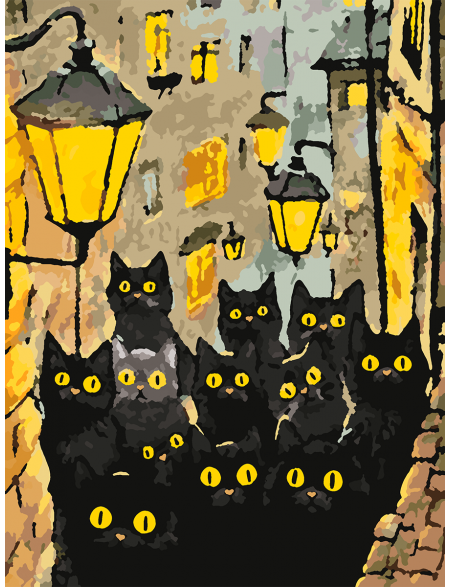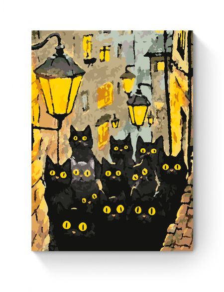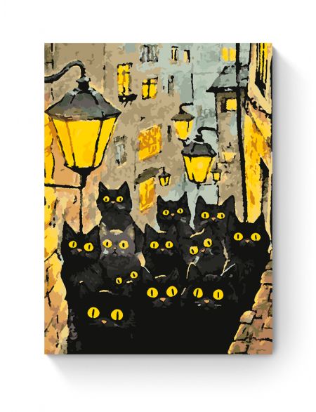 Картина по номерам без подрамника «Черные коты» 35x25 см