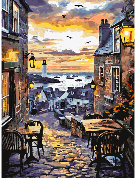Картина по номерам без подрамника «Кафе у моря» 70x50 см