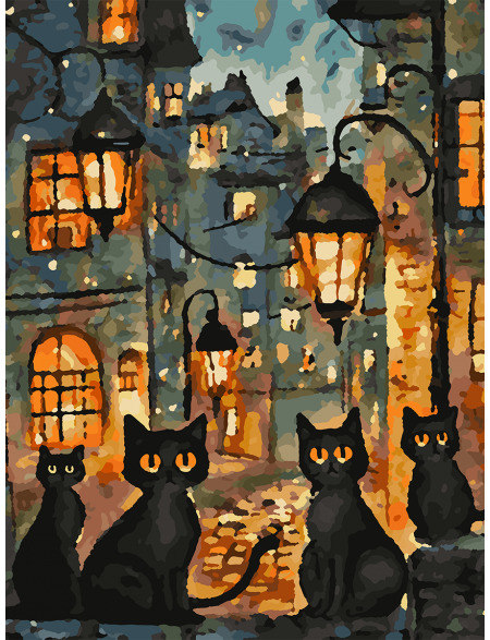 Картина по номерам без подрамника «Чёрные коты» 40x30 см