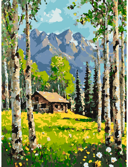 Картина по номерам без подрамника «Домик в лесу» 90x70 см