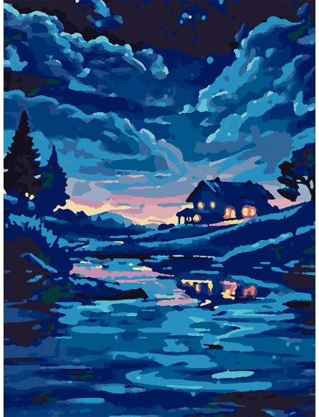 Картина по номерам без подрамника «Домик в ночи» 40x30 см