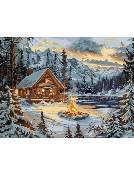 Картина по номерам на подрамнике «Домик в горах» 35x25 см