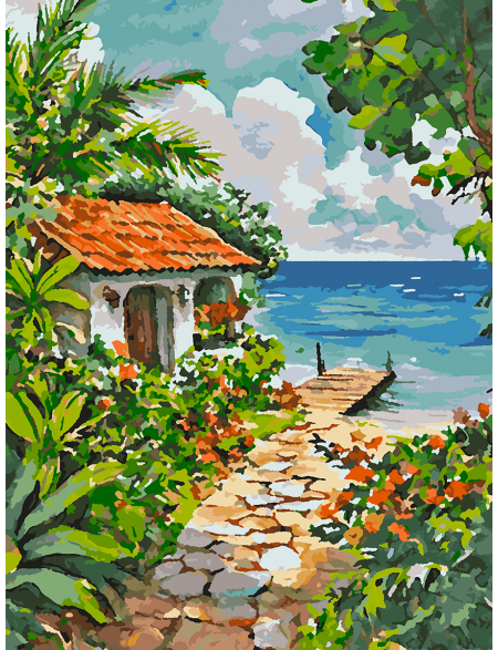 Картина по номерам без подрамника «Домик у моря» 70x50 см