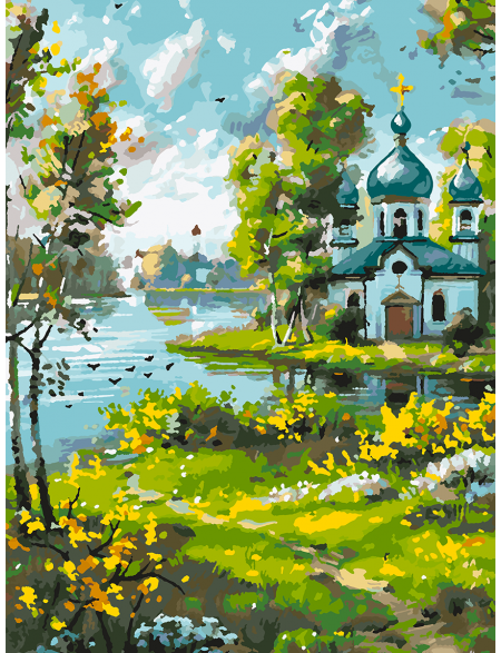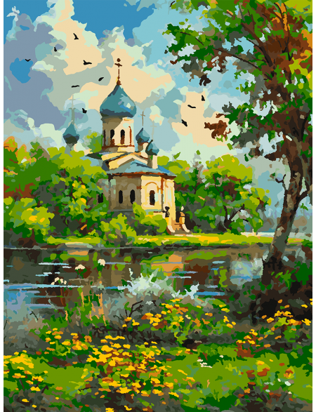 Картина по номерам без подрамника «Храм у реки» 35x25 см
