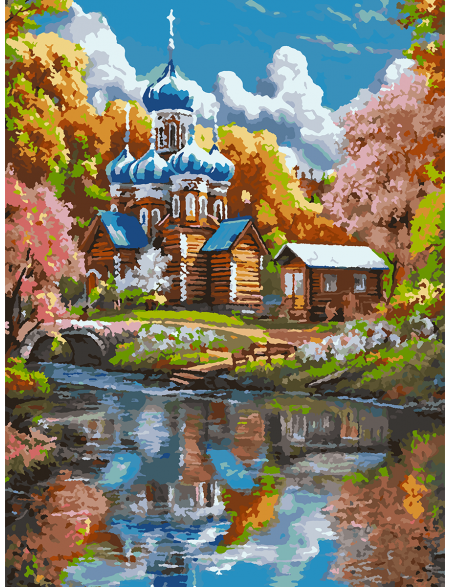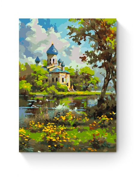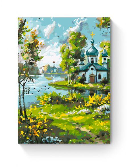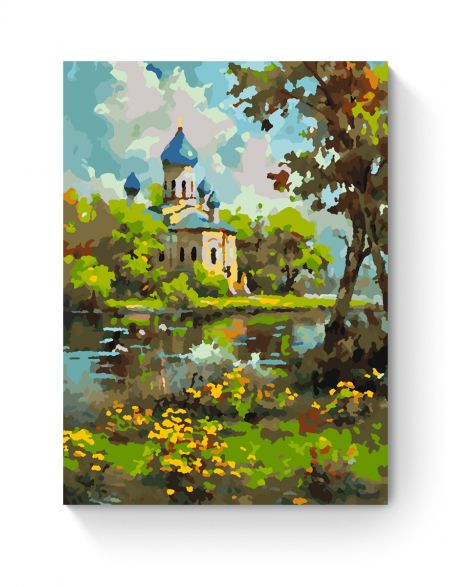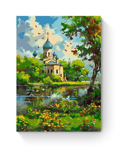 Картина по номерам на подрамнике «Храм у реки» 35x25 см